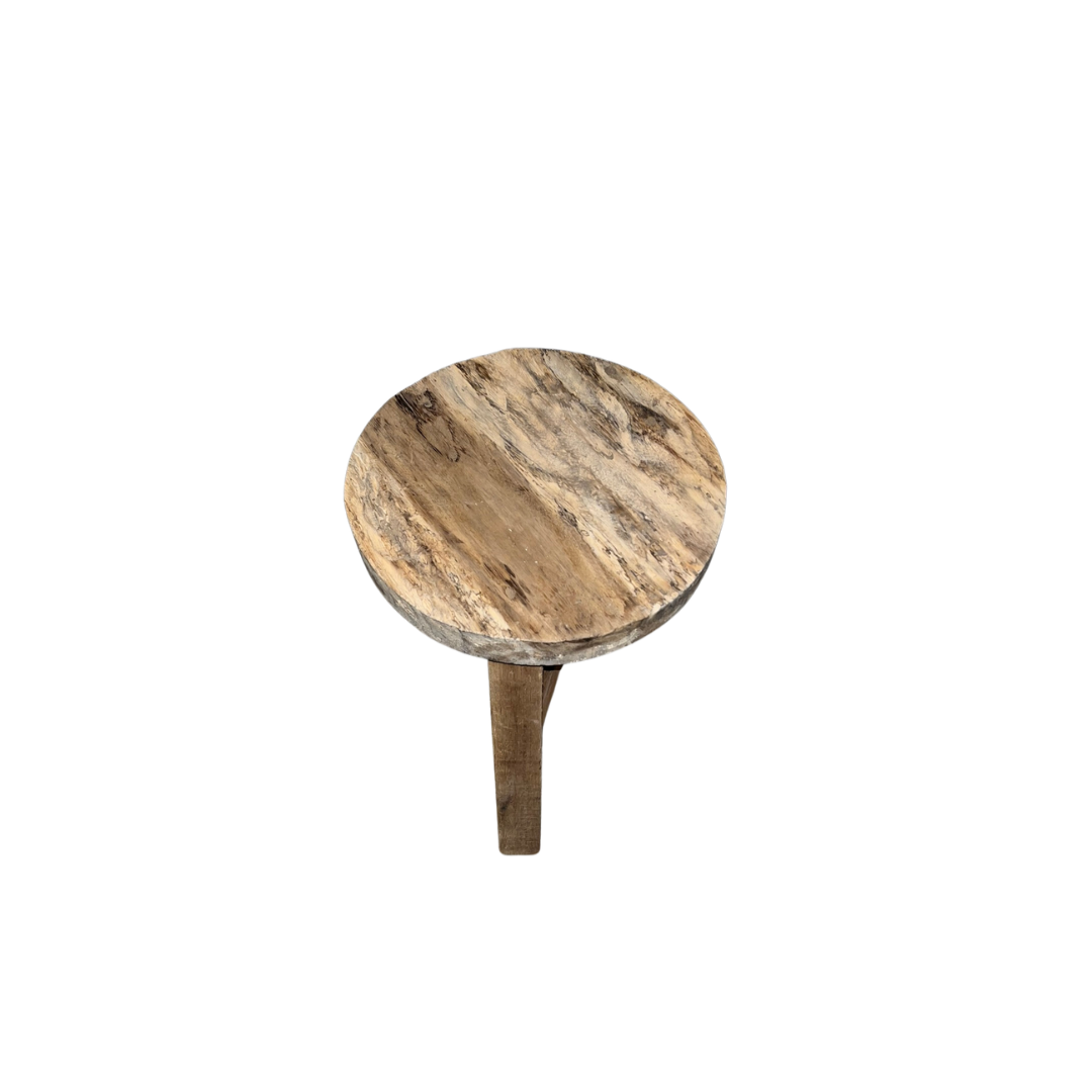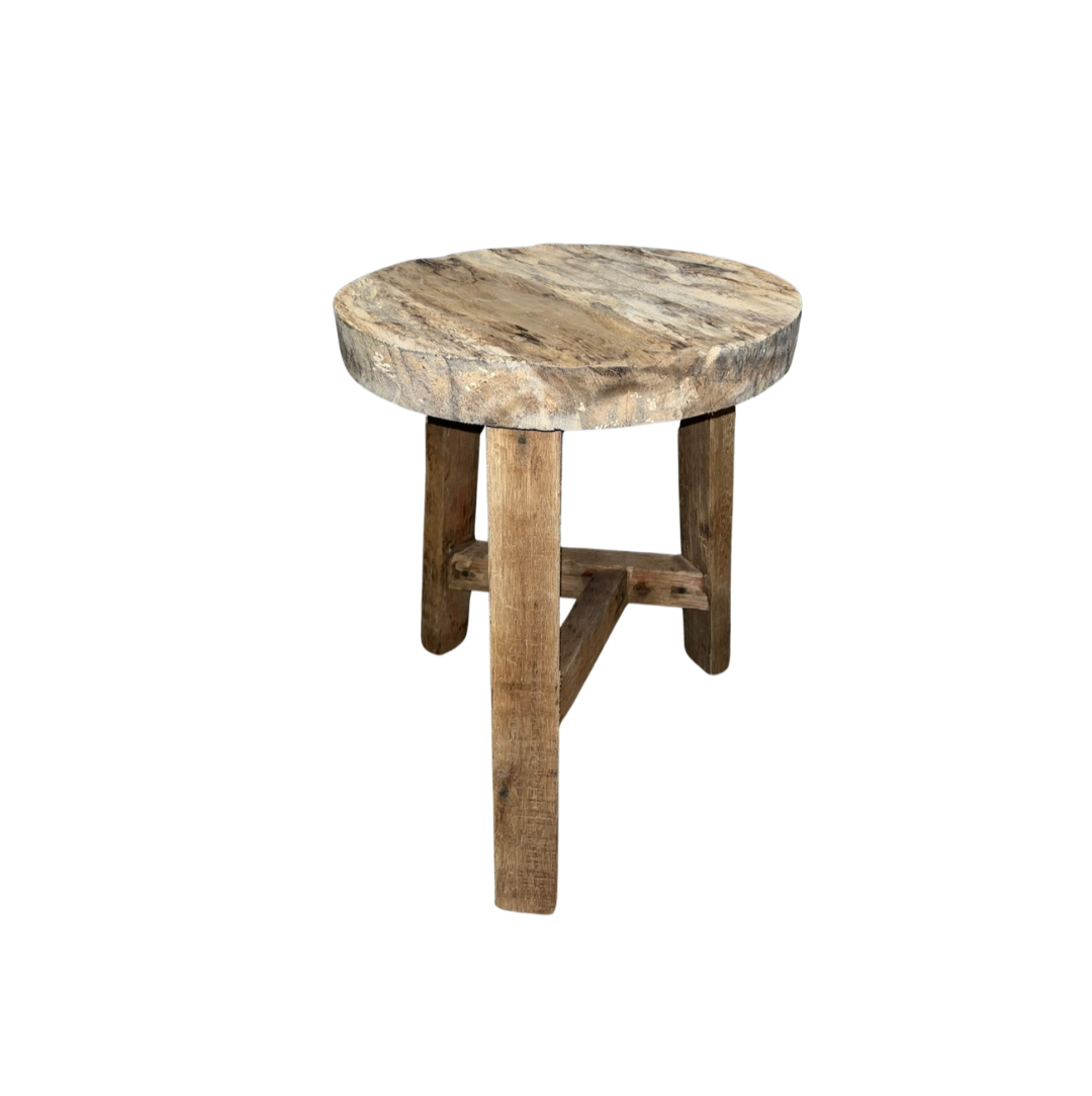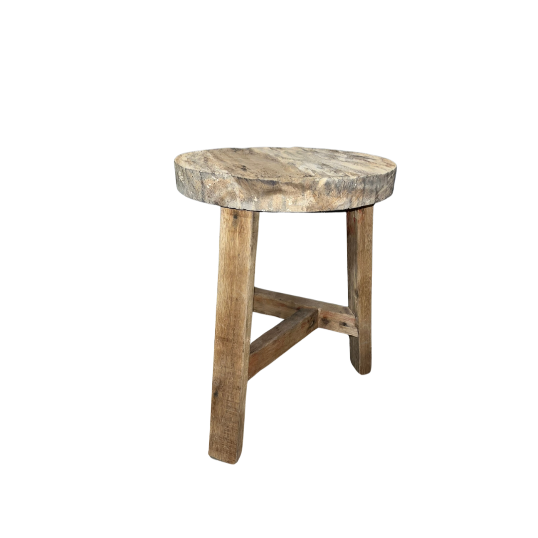 Es sei jedoch darauf hingewiesen, dass diese Hocker oft natürliche Risse in der Tischoberfläche aufweisen, die jedoch nicht als Mangel angesehen werden sollten, sondern vielmehr zur Charakteristik des Möbelstücks beitragen. Die Kombination aus handwerklichem Können und dem natürlichen Charme des Holzes macht diesen Hocker zu einem einzigartigen und faszinierenden Kunstwerk, das sowohl funktional als auch ästhetisch ansprechend ist.