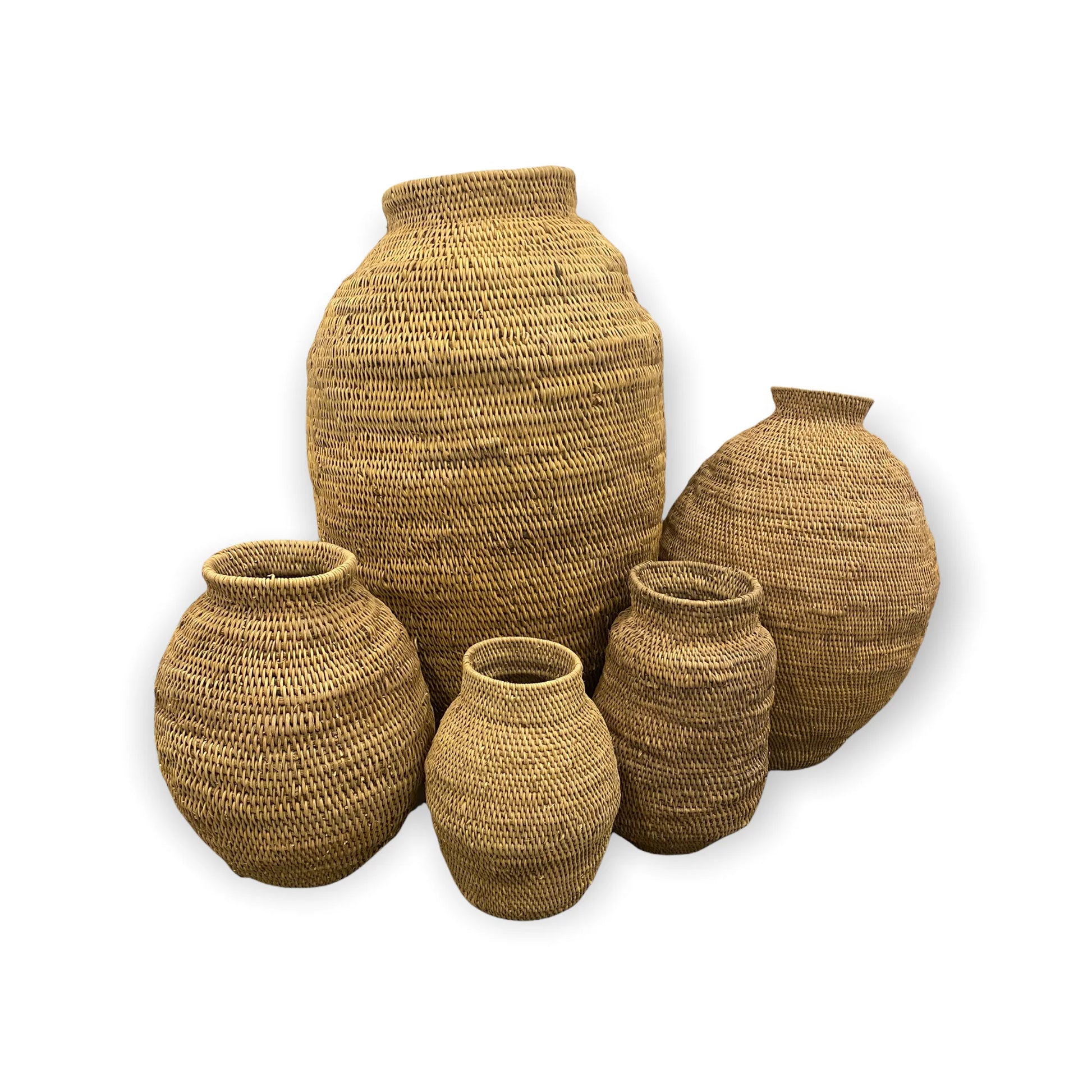 Tauchen Sie ein in die Schönheit und Handwerkskunst der afrikanischen Kultur mit diesen handgewebten Bohero Körben. Hergestellt von talentierten Frauen aus dem Bezirk Buhera, grenzüberschreitend zwischen Simbabwe und Sambia, sind diese Körbe aus lokalem Fluss-Schilfrohr gefertigt und waren ursprünglich für die Aufbewahrung von Getreide und anderen Lebensmitteln gedacht.