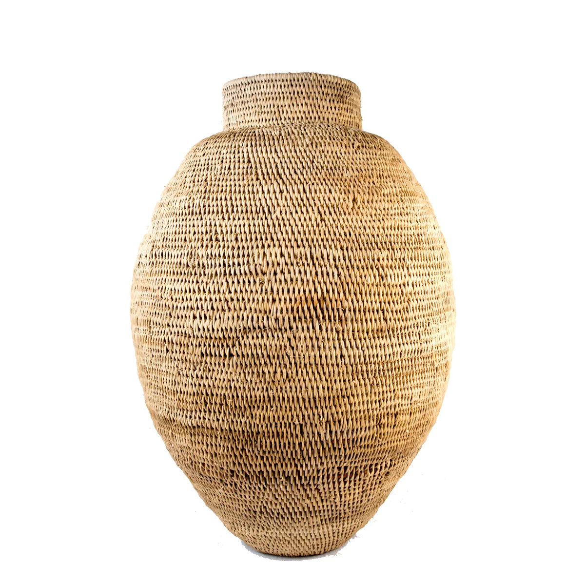 Tauchen Sie ein in die Schönheit und Handwerkskunst der afrikanischen Kultur mit diesen handgewebten Bohero Körben. Hergestellt von talentierten Frauen aus dem Bezirk Buhera, grenzüberschreitend zwischen Simbabwe und Sambia, sind diese Körbe aus lokalem Fluss-Schilfrohr gefertigt und waren ursprünglich für die Aufbewahrung von Getreide und anderen Lebensmitteln gedacht.