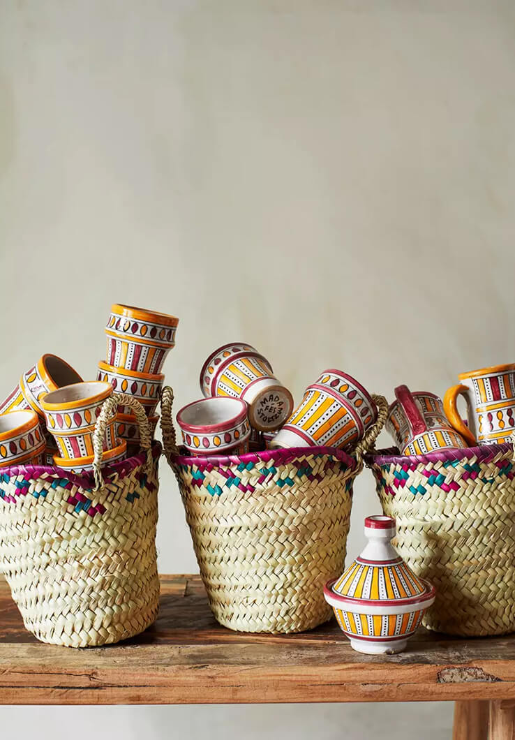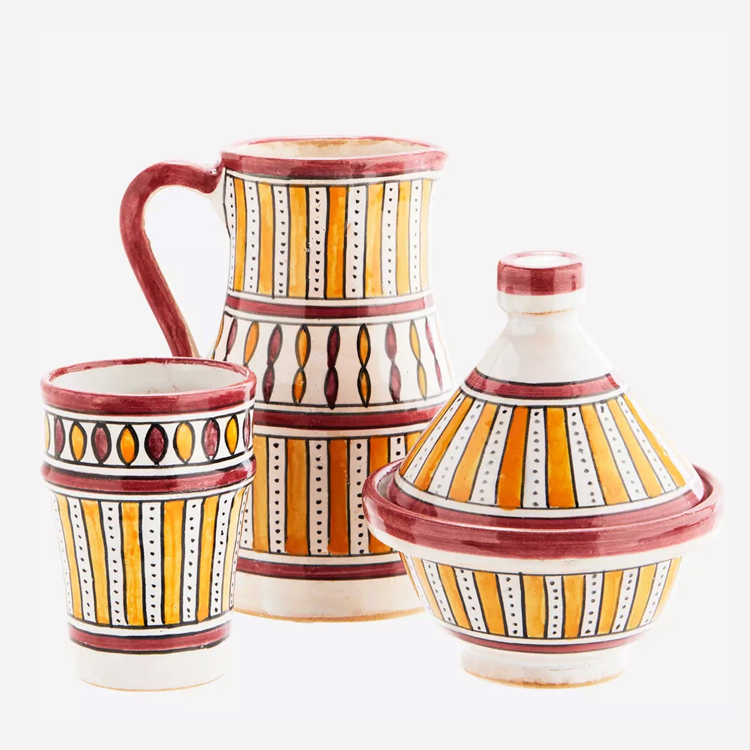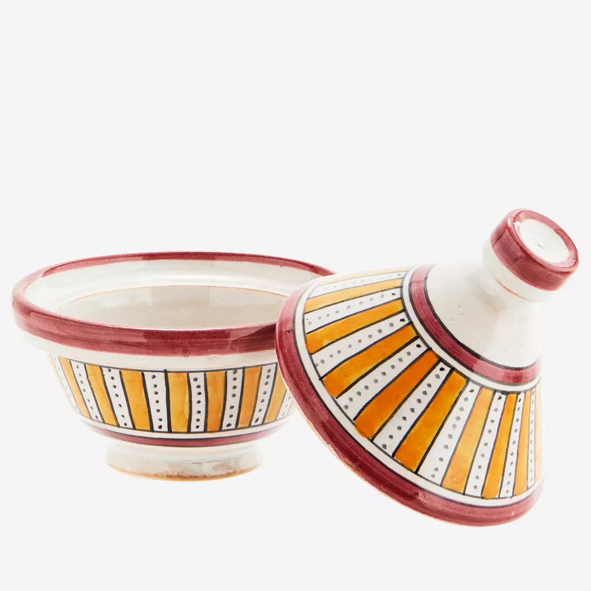 Diese kleinen handbemalten Tagines sind ein wahrer Blickfang auf Ihrem Esstisch und bringen den Zauber von Marokko in Ihre Küche. Erleben Sie die Schönheit und den Geschmack der marokkanischen Küche.