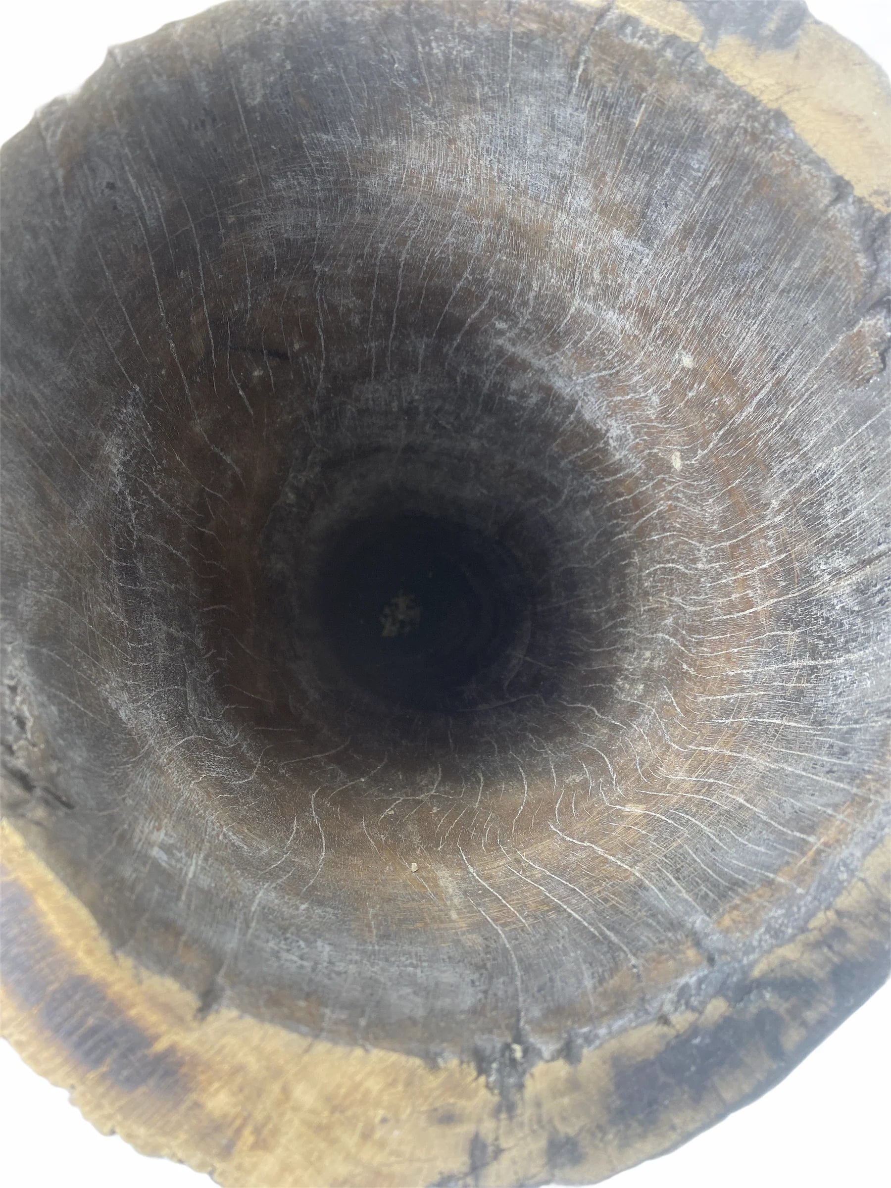 "African Grain Stomper" entstehen durch das Aushöhlen von Baumstämmen und großen Ästen, um sie anschließend zum Mahlen von Körnern zu verwenden. Doch nicht nur als nützliches Werkzeug sind sie gedacht, sondern auch als wahre Kunstwerke. Aber ihre Funktion geht weit darüber hinaus, denn durch das Hinzufügen von Tischplatten haben sie einen neuen Zweck als Beistelltische gefunden.