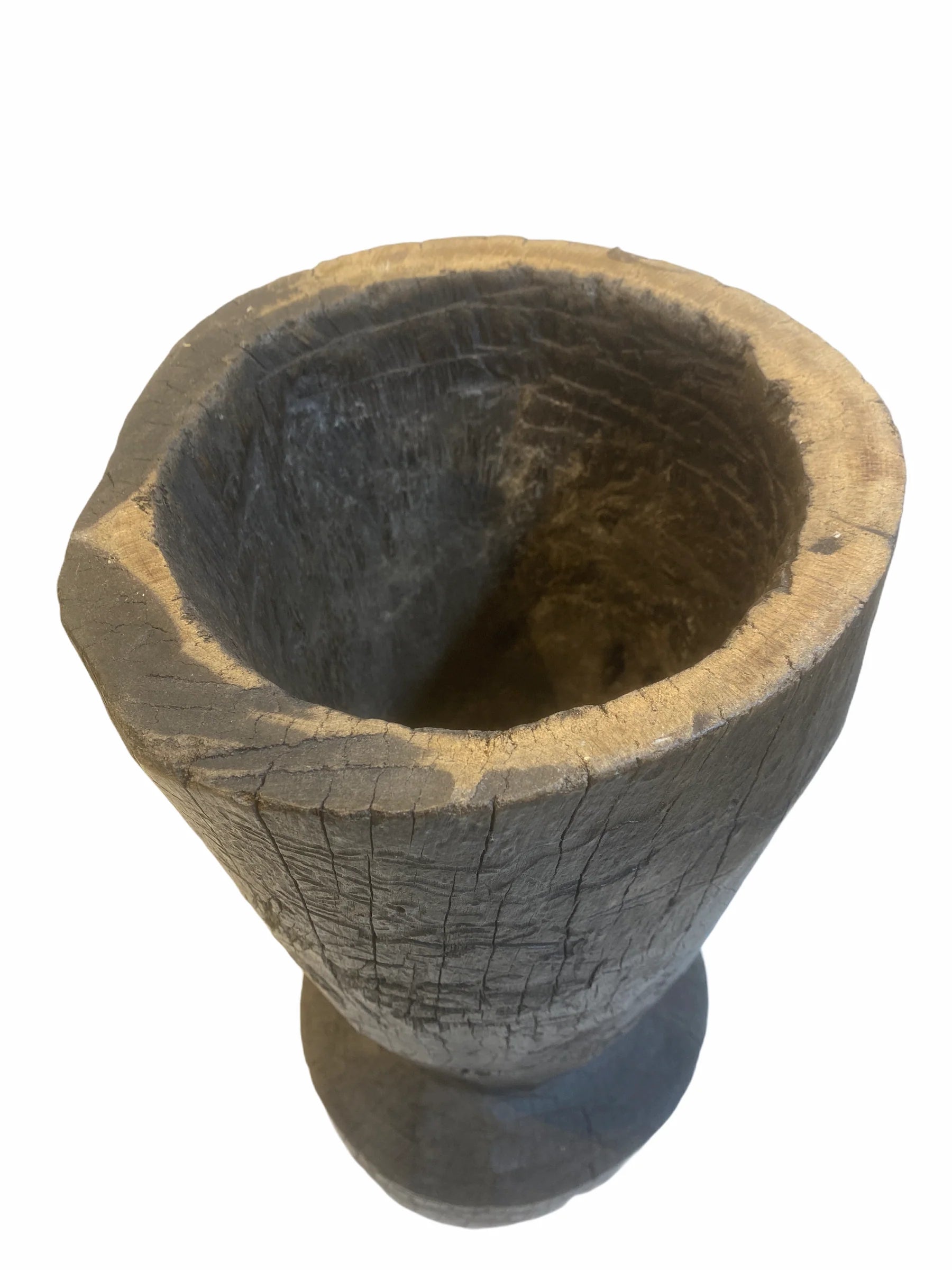 Die Jahre haben ihnen eine wunderschöne Patina verliehen, die oft mit Metallverzierungen und Reparaturarbeiten aus der Zeit ihrer ursprünglichen Verwendung auf dem Feld verziert sind. Jeder Getreidestampfer erzählt seine eigene Geschichte und ist ein wertvolles Kunstwerk, das sowohl ästhetisch als auch funktional ist. Durch das Recycling und Wiederverwendung dieser einzigartigen Gegenstände wird ihre Geschichte bewahrt und weitergegeben.