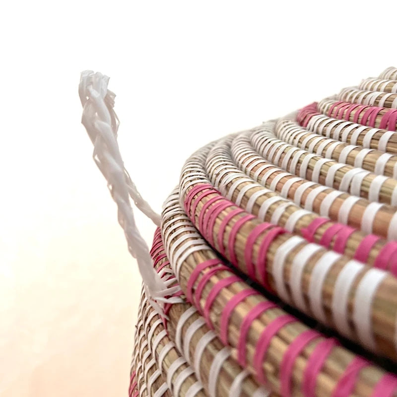 Der handgeflochtene Korb ist nicht nur ein praktisches Aufbewahrungselement, sondern auch ein Stück Handwerkskunst. Jeder Korb wird mit großer Sorgfalt und Liebe zum Detail von erfahrenen Handwerkerinnen geflochten, wodurch er einen einzigartigen Charme und eine individuelle Note erhält.