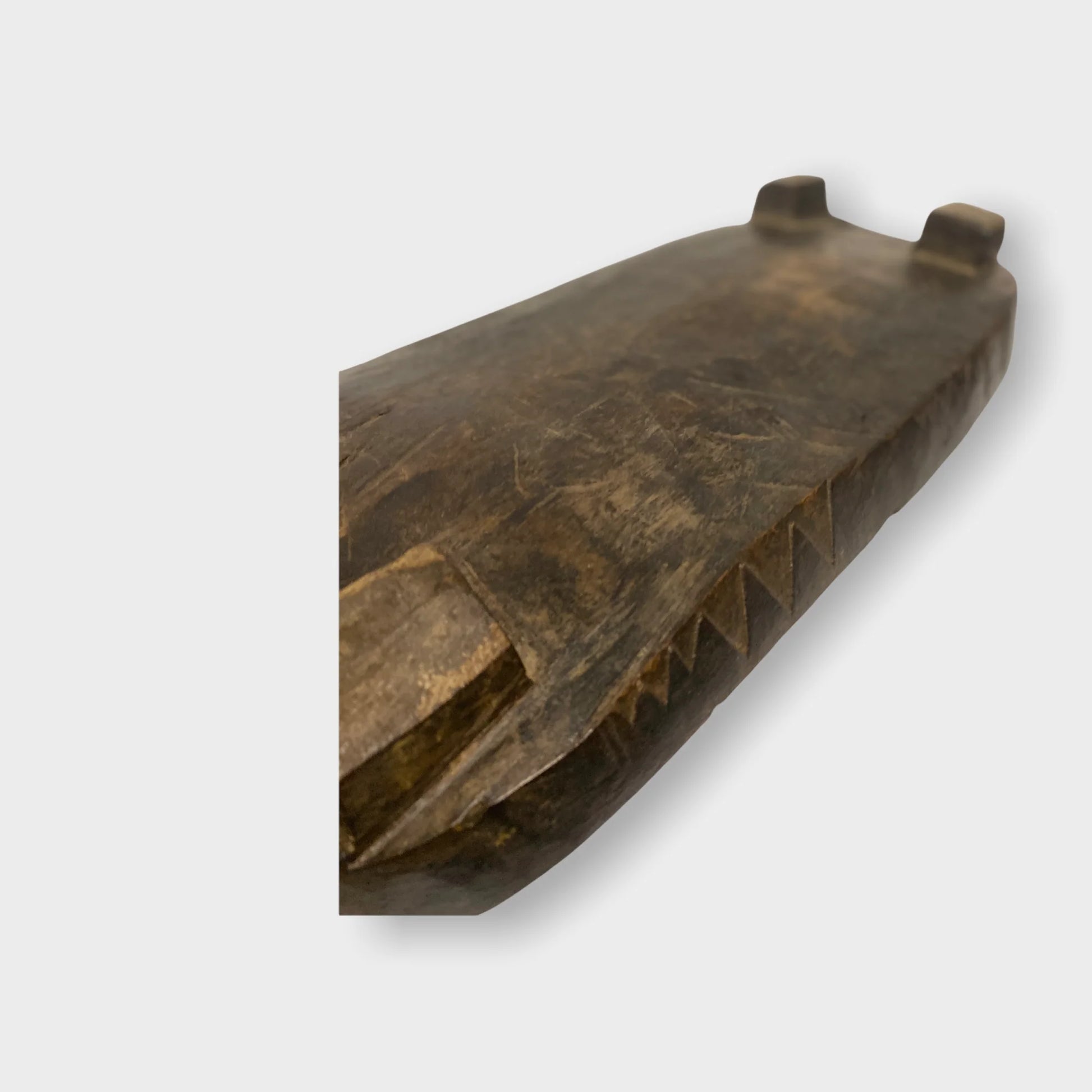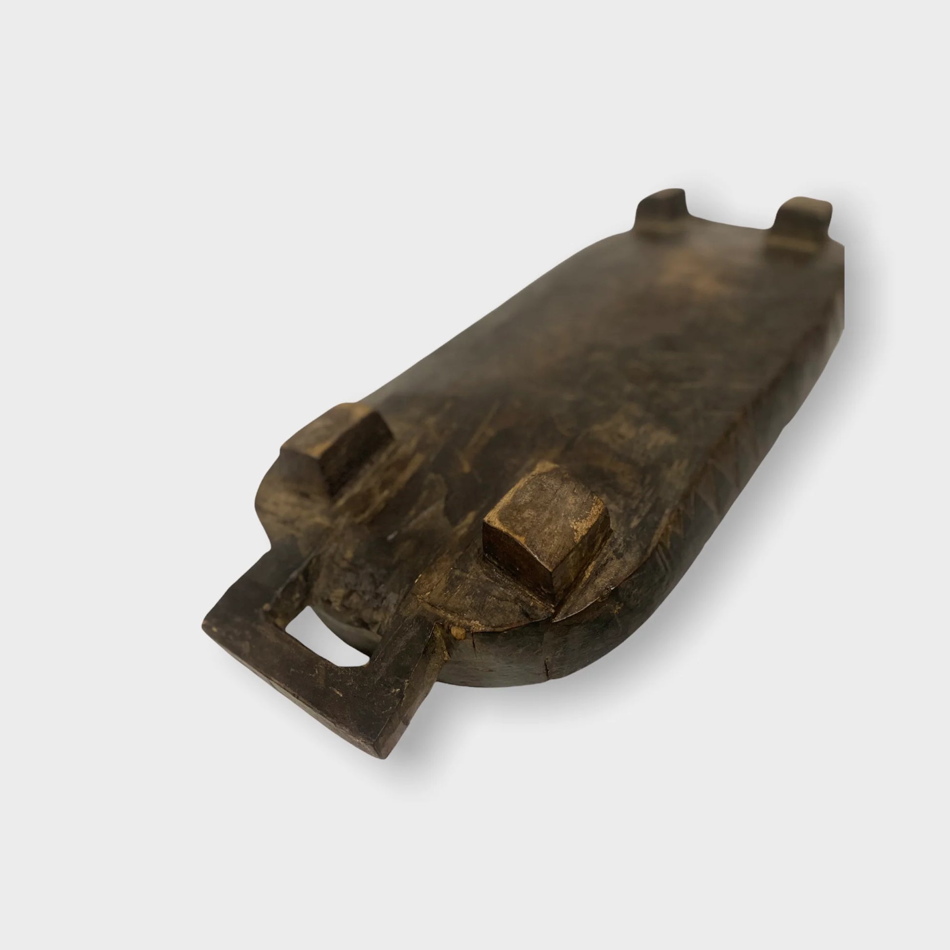 Dies ist eine außergewöhnliche alte Zulu-Holzschnitzerei oder Platte aus Südafrika. Diese Platte wurde aus einem einzigen Stück Hartholz geschnitzt und diente früher zur feierlichen Präsentation verschiedener Speisen.
