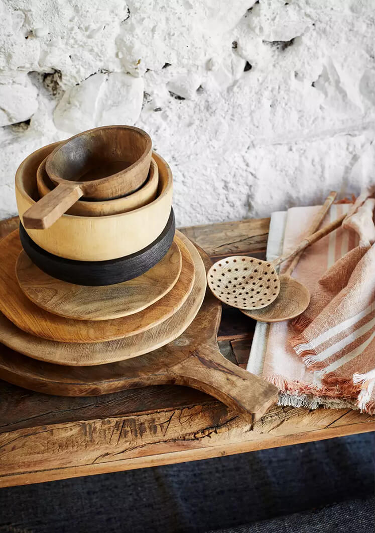 Der Griff ermöglicht eine bequeme Handhabung und ein einfaches Servieren Ihrer kulinarischen Kreationen. Die natürliche Maserung und warme Farbe des Mangoholzes verleihen dem Brett eine rustikale und ansprechende Ästhetik, die zu verschiedenen Einrichtungsstilen passt. Verwenden Sie das Servierbrett für das Anrichten von Käseplatten, Obst, Gebäck oder sogar als stilvolle Basis für dekorative Elemente in Ihrem Zuhause.