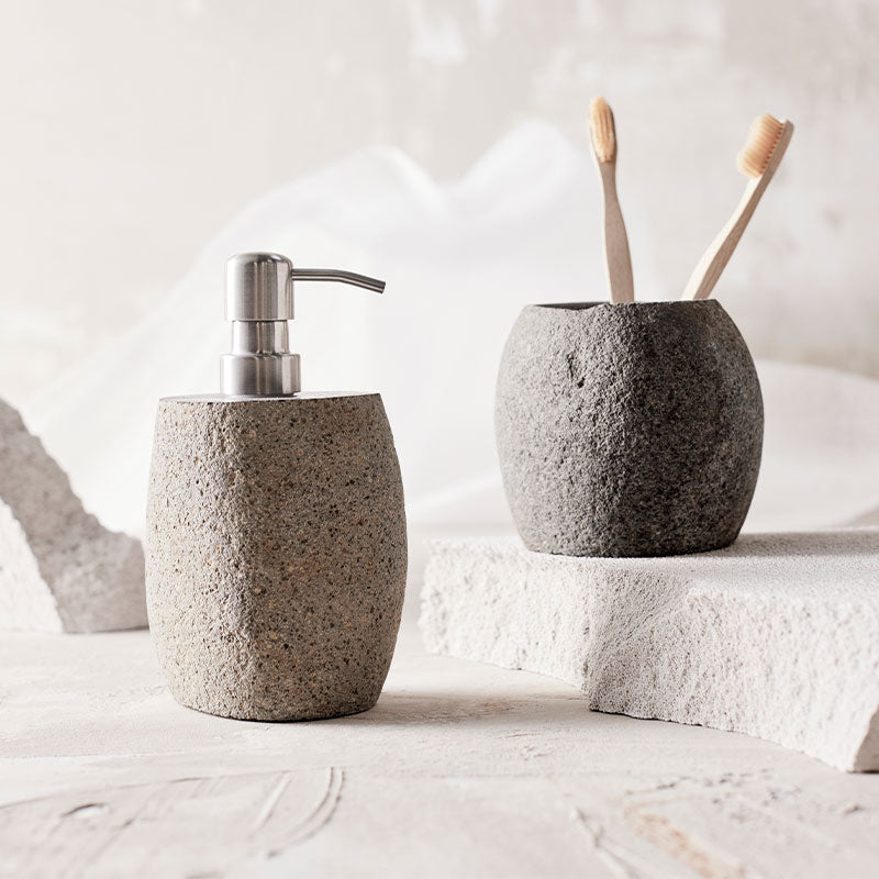 Der Zahnbürstenhalter ist aus der beliebten und einzigartigen Serie Valley, die aus indonesischen Flusssteinen hergestellt wird.