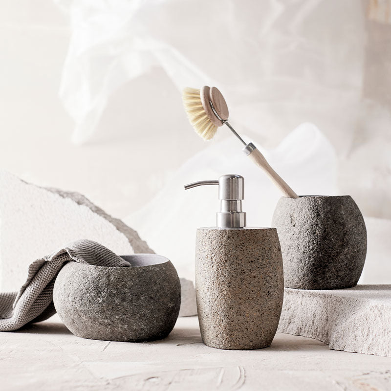 Die Serie aus Naturstein verleiht dem Haus einen rohen Look und verleiht dem Raum Seele und Kante. Jedes Produkt ist einzigartig und kann in Ausdruck und Form variieren, je nachdem, wie der Stein aus der Natur ist.